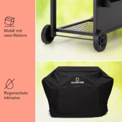 Hier bleibt niemand hungrig: Der rollbare Klarstein Aberdeen Kombi-Grill für Gas oder Holzkohle ist ein designstarker Grillmeister für ausgiebige BBQ-Events in großer Runde!