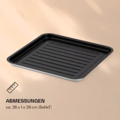 Auf dem Backblech der AeroVital Jumbo Heißluftfritteuse von Klarstein kannst du nach Herzenslust feinste Backwaren kreieren. Egal ob Plätzchen, Blechkuchen oder Pizza, auf dem Edelstahlbackblech passt es wunderbar in deinen Heißluftofen. Dank der glatten Oberflächen ist es nicht nur äußerst langlebig, sondern auch einfach zu reinigen.