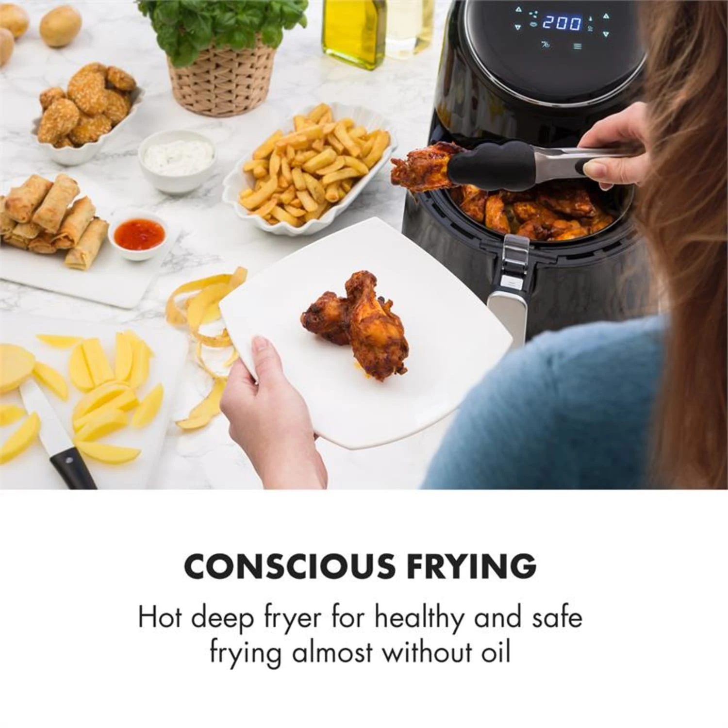 Heiße Freude für den Magen aus der Fritteuse mit bis zu 80% weniger Kalorien? Das geht! Mit der Klarstein AirVital Heißluftfritteuse wird nahezu öl- und fettfrei frittiert, gebraten, gebacken oder gegrillt: Knusprig, gesund und lecker!