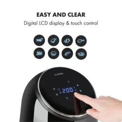 Rein mit den Pommes, fertig, los! Die Klarstein AirVital Heißluftfritteuse revolutioniert das bewährte, fettfreie Frittiersystem und bringt es auf neue Höhen des Geschmacks. Ihr 1300 Watt starkes Heißluftsystem arbeitet mit einem besonders ausgeklügelten Umluft- und Durchlüftungssystem und erreicht so die gewünschten Betriebstemperaturen in nur 3 Minuten. Per Thermostat wird die gewünschte Heizleistung in 5 °C Schritten von 80 bis 200 °C eingestellt. Dann noch den Timer minutenweise bis 60 Minuten programmieren und schön röstet die AirVital los. Wem das noch zu kompliziert ist, der kann auch einfach eines von 8 voreingestellten Programmen nutzen: Pommes, Bacon, Huhn, Lobster, Steak, Muffin, Pilze & Gemüse sowie Fisch stellen die ganze Bandbreite des Frittierens, Bratens, Grillens, Backens und Röstens zur Verfügung.