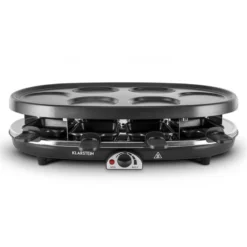 Die Temperatur lässt sich über einen Drehschalter stufenlos regeln, während eine LED den Betrieb des Geräts anzeigt. Die ovale Form des Klarstein All-U-Can-Grill Raclettegrills ist nicht nur angenehm anzusehen, sondern lässt auch Gesellschaften rund um das Gerät zusammenwachsen. Damit auch nach dem Essen der Spaß nicht aufhört, sind sowohl Pfännchen als auch Metall-Grillplatten mit einer Anti-Haft-Schicht versehen, die die Reinigung immens erleichtern.