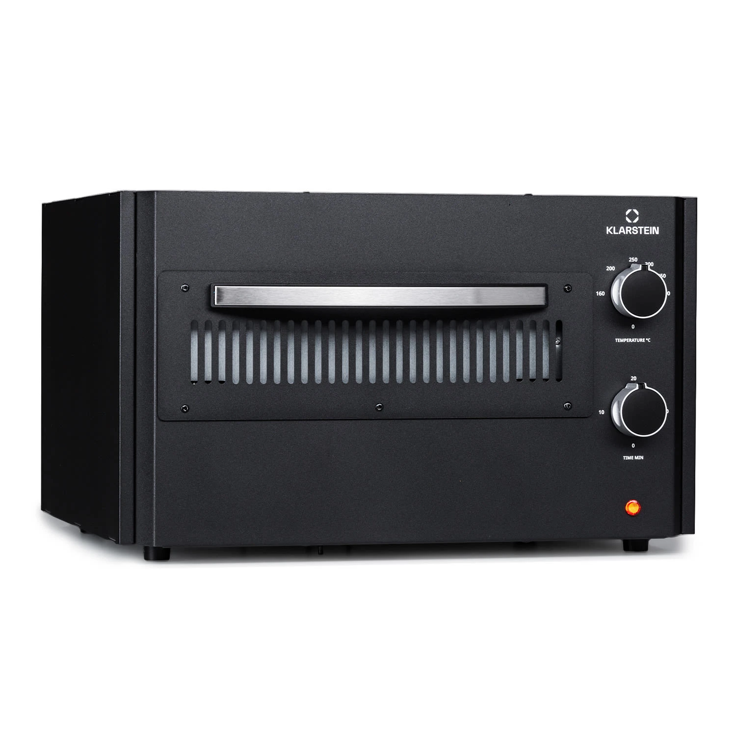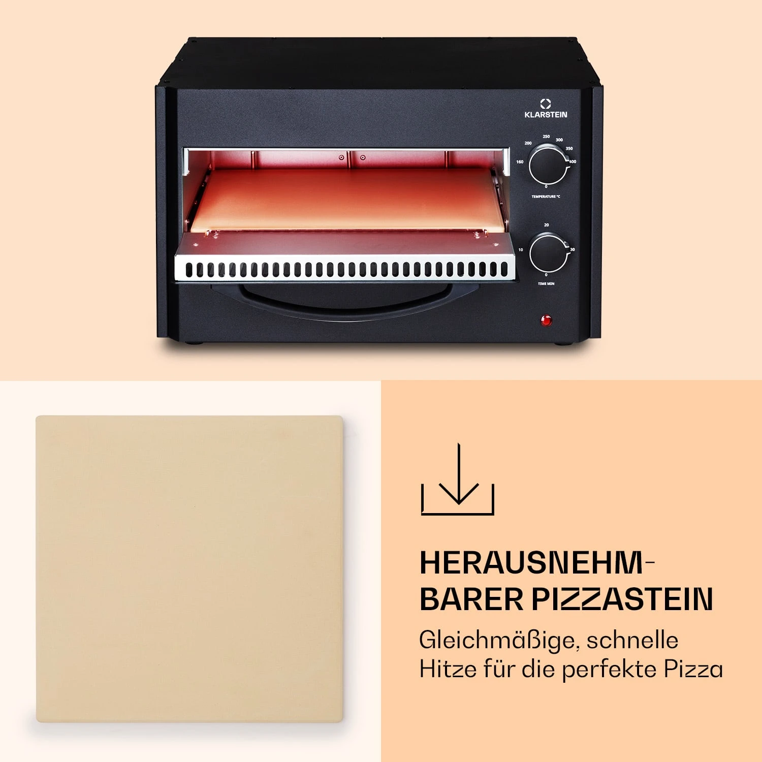 Knusprige Pizza wie aus Italien: Der einzigartige Pizza-Ofen Arezzo von Klarstein ermöglicht dir das Zubereiten von feiner Pizza und Speisen aller Art. Die unterschiedlichen Temperatureinstellungen sind perfekt abgestimmt, um beispielsweise auch Kekse, Croissants, Fischstäbchen, Pellkartoffeln oder Lasagne ideal zu backen. Ganz komfortabel kannst du an den vorderen Drehreglern das Programm wählen und den praktischen Timer einstellen. Der herausnehmbare Pizzastein ermöglicht dir zudem die Zubereitung von Speisen direkt auf dem Rost. Einen besonderen Vorteil erlebst du hier, da du die Blende der Schiebetür herunterklappen und so deine Pizza ideal hineinschieben und anschließend wieder herausziehen kannst.