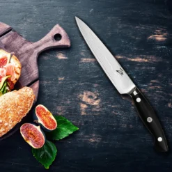 Unser Allzweckmesser der Executive-Plus Serie von Zelite Infinity by Klarstein verfügt über eine elegante und schön gemusterte mittelgroße Klinge. Für alle Aufgaben, die zu groß für ein Schälmesser, aber zu detailliert für ein Kochmesser sind, ist dieses Universalmesser deine erste Wahl. Es ist ideal zum Schneiden von mittelgroßem Gemüse, Käse, Fleisch, Geflügel oder auch Fisch. Egal, ob du Karotten würfeln, Grapefruits zerteilen,oder Hartwurst aufschneiden möchtest, dieses vielseitige Universalmesser erledigt alle Aufgaben mit Komfort und Leichtigkeit.