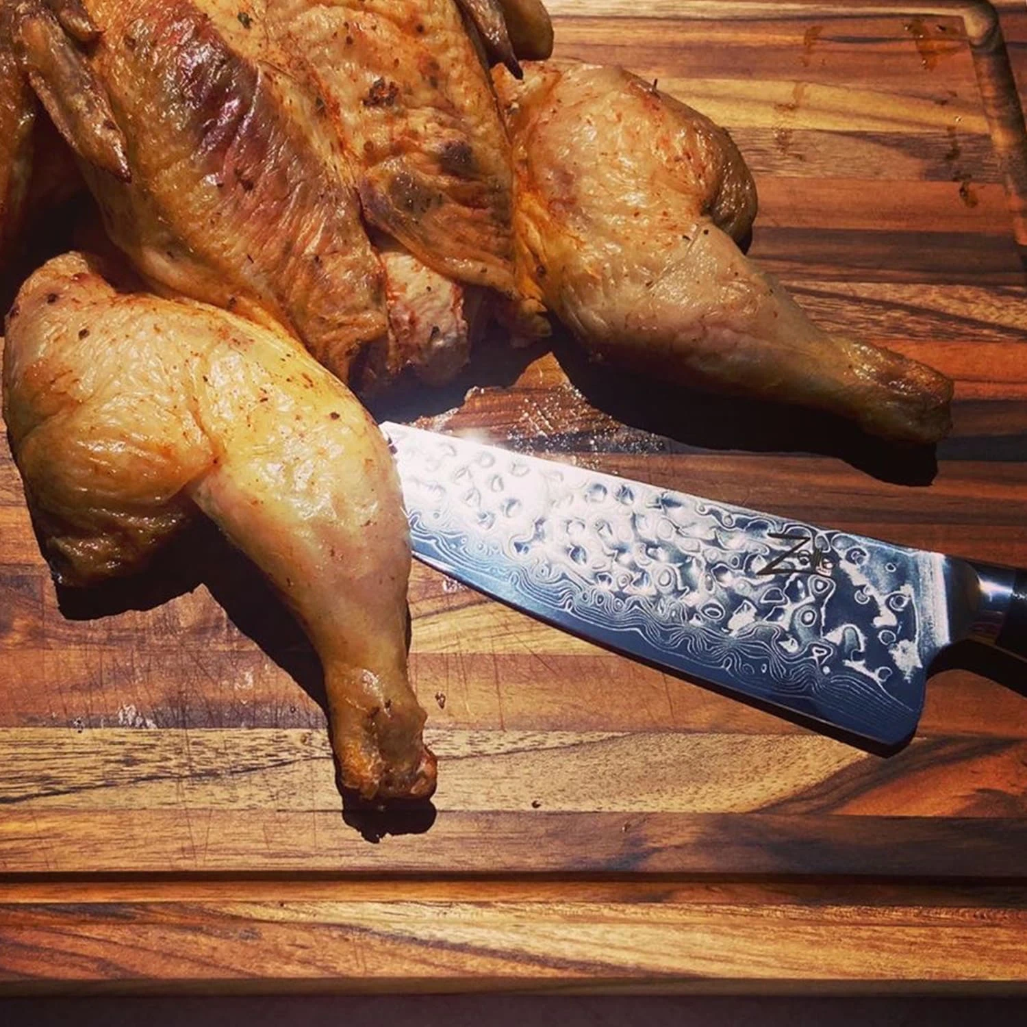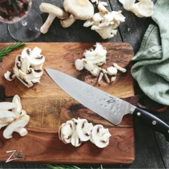 Unser Celebrity Kochmesser der Executive-Plus Serie von Zelite Infinity by Klarstein lässt sich am besten als schlank, stark und edel beschreiben. Seine stilvolle und kräftige Klinge ist mit einer Breite von 56 mm extra tief. Wir haben außerdem eine gehämmerte Tsuchime-Oberfläche hinzugefügt, um das Anhaften von Lebensmitteln zu minimieren. Der glatte, ergonomische G10-Griff mit Buckelrücken ist genau an den richtigen Stellen gebogen, so dass er sich anfühlt, als sei er für deine Hand maßgeschneidert worden. Dieses elegante und effiziente Werkzeug wird zweifellos deine Leidenschaft für die gehobene Kochkunst entfachen.