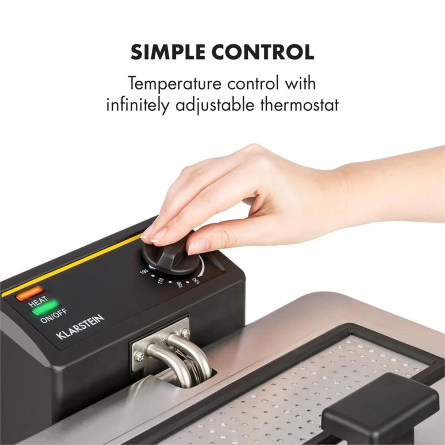 Ein Drehregler mit stufenlosem Thermostat lässt sich mit der digitalen Temperaturkontrolle einfach bedienen, sodass jedes Lebensmittel genau die richtige Hitze bekommt. Professionell ist auch das Kaltzonen-Verfahren der Family Fry Fritteuse: Im unteren, abgetrennten Bereich der Wanne kühlt das Öl ab, während es im oberen Bereich dank frei liegendem Heizelement die gewählte Temperatur exakt hält. Aufgeheiztes Öl steigt auf, kühlt ab und sinkt an den Außenwänden in den Bereich unter dem Heizelement, wo es abkühlt. Herabsinkende Frittierreste können somit nicht am Topfboden anbrennen und den Geschmack von frittierten Speisen beeinflussen: Alles schmeckt wunderbar frisch.