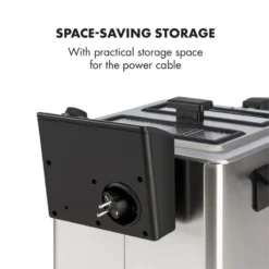Von außen ist das Edelstahl-Gehäuse der Family Fry Fritteuse nicht nur schön anzuschauen: Nach der Zubereitung ist das Gerät innen wie außen schnell wieder gesäubert. Ein Kabelfach in der Rückseite des Heizelements erleichtert das Verstauen.
