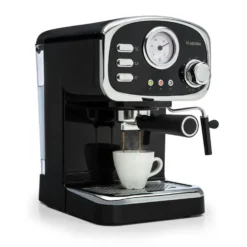 Der Gusto Classico Espressomaker von Klarstein verzaubert nicht nur mit kraftvoll aromatischem, frisch gebrühtem Kaffeegenuss deinen Gaumen – auch der Anblick ist ein wahrer Augenschmaus. Erlebe den verführerischen Duft, wenn die Siebträgermaschine in ausgefallenem Retro-Design mit 20 Bar Druck das volle Aroma des Kaffees entfesselt. Geeignet ist dieEspressomaschine für gemahlenen Kaffee, wie auch für Kaffeepads.