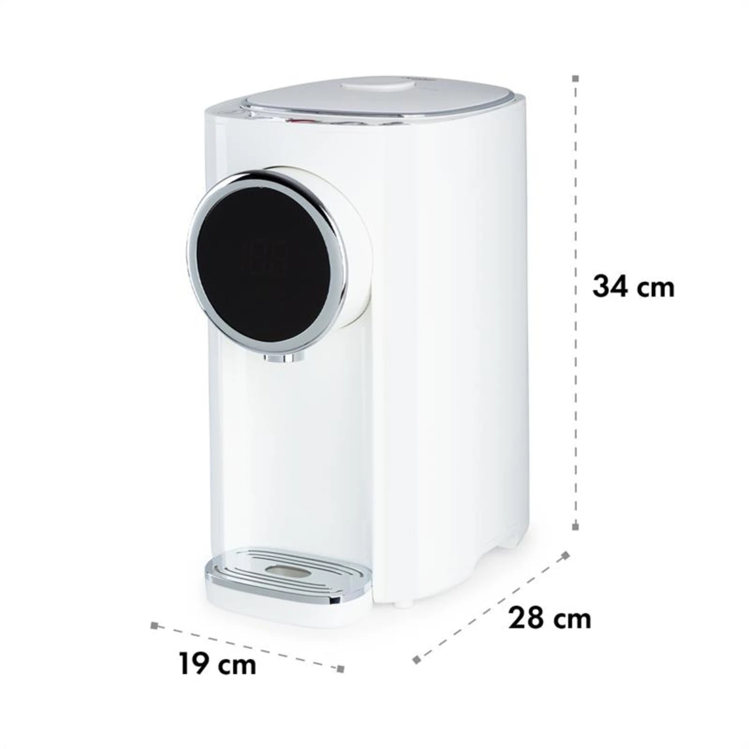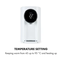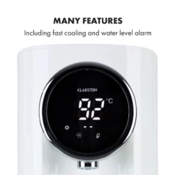 Es gibt viele Gelegenheiten, zu denen sich ein Betrieb des Klarstein Hot Spring Plus Heißwasserspenders anbietet: Schnell einen Tee in der gewünschten Temperatur aufbrühen oder Instant-Suppen mit der exakt benötigten Menge Wasser zubereiten sind nur zwei der vielen Möglichkeiten. Der große Edelstahl-Wassertank des Hot Spring PlusHeißwasserspenders nimmt dabei bis zu 5 Liter Wasser auf und eignet sich neben dem Privathaushalt auch hervorragend fürs Büro. Die Bedienung des Heißwasserspenders mit Trockengeh- und Überhitzungsschutz ist denkbar einfach: An der Oberseite befindet sich die Touch-Oberfläche mit jeweils einer Taste für Erhitzen, Temperatur (45-95 °C), Wasserausgabe, zum Lösen der Kindersicherung sowie für gefiltertes Wasser. Es müssen nur die gewünschte Füllmenge und Temperatur eingestellt und die Ausgabetaste gedrückt werden – schon erhält man sehr zügig perfekt temperiertes, heißes Wasser. Dadurch ist die Handhabung kinderleicht und wird schnell zur angenehmen Routine. Die Tropfwanne kann mit einem Handgriff abgenommen und bei Bedarf gespült werden, während die vielfältigen Funktionen wie schnelles Abkühlen sowie der Wasserstands-Alarm die Bedienbarkeit des Gerätes zusätzlich erleichtern. Durch sein großes, übersichtliches Display werden nicht nur alle wichtigen Informationen jederzeit im Blick behalten – der Heißwasserspender wird dadurch auch zum besonderen Blickfang und fügt sich nahtlos in jedes Küchenambiente ein.