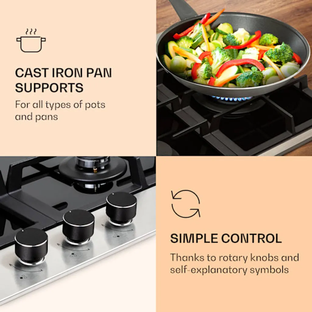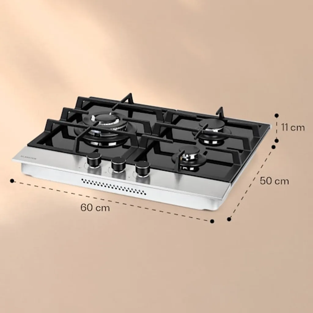 Klarstein Alchemist 3 Gaskochfeld , 6,2 KW , 3-flammig Aluminium-Brenner , Glaskeramik , Elektrische Zündung , Inkl. Schlauch Und Druckminderer
