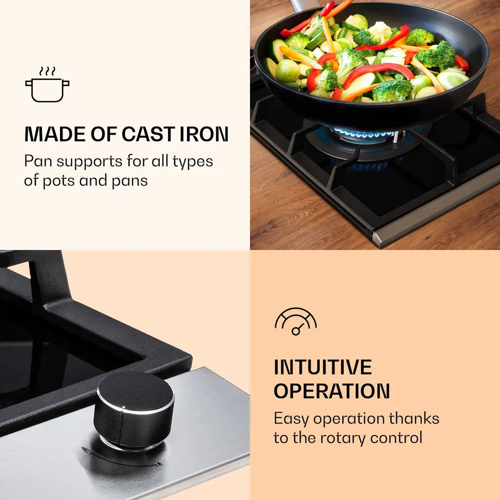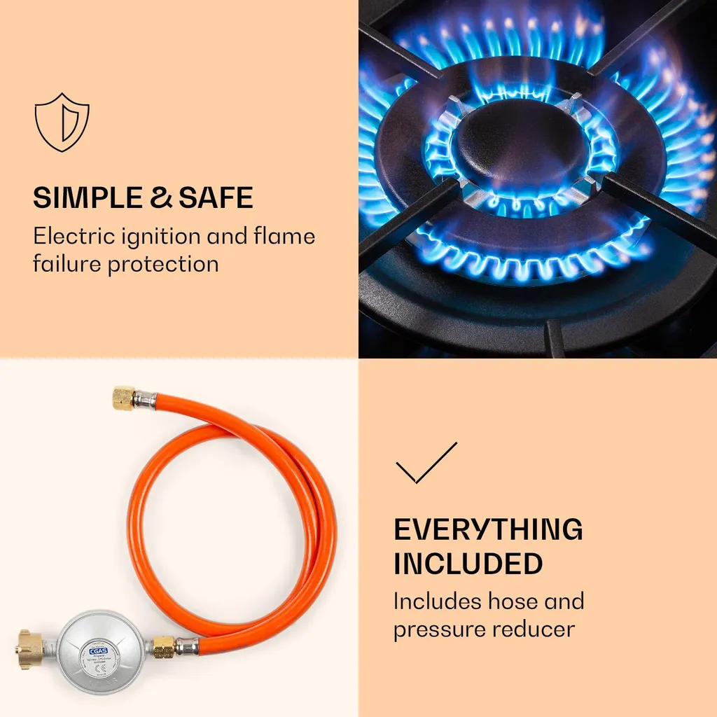Klarstein Alchemist Gaskochfeld . Wokbrenner Aus Aluminium , Inklusive Schlauch Und Druckminderer , Elektrische Zündung , Für Flüssig- Oder Erdgas , Glaskeramik