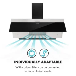 Klarstein Alessia Dunstabzugshaube , 90 Cm , EEK B , 350 M³/h , Push Control , LED-Beleuchtung , Abluft Oder Umluft , Kopffreihaube , Wandhaube , Edelstahl-Glas-Mix , Schwarz