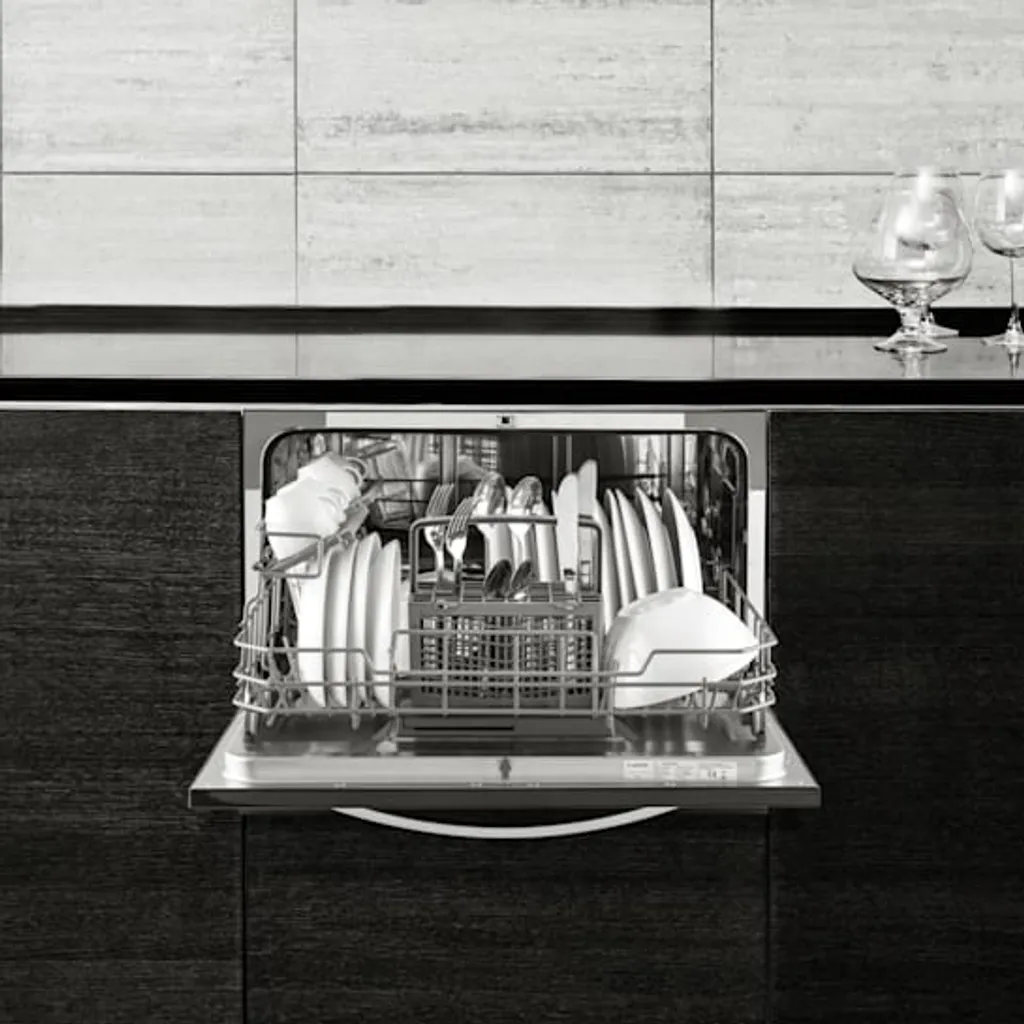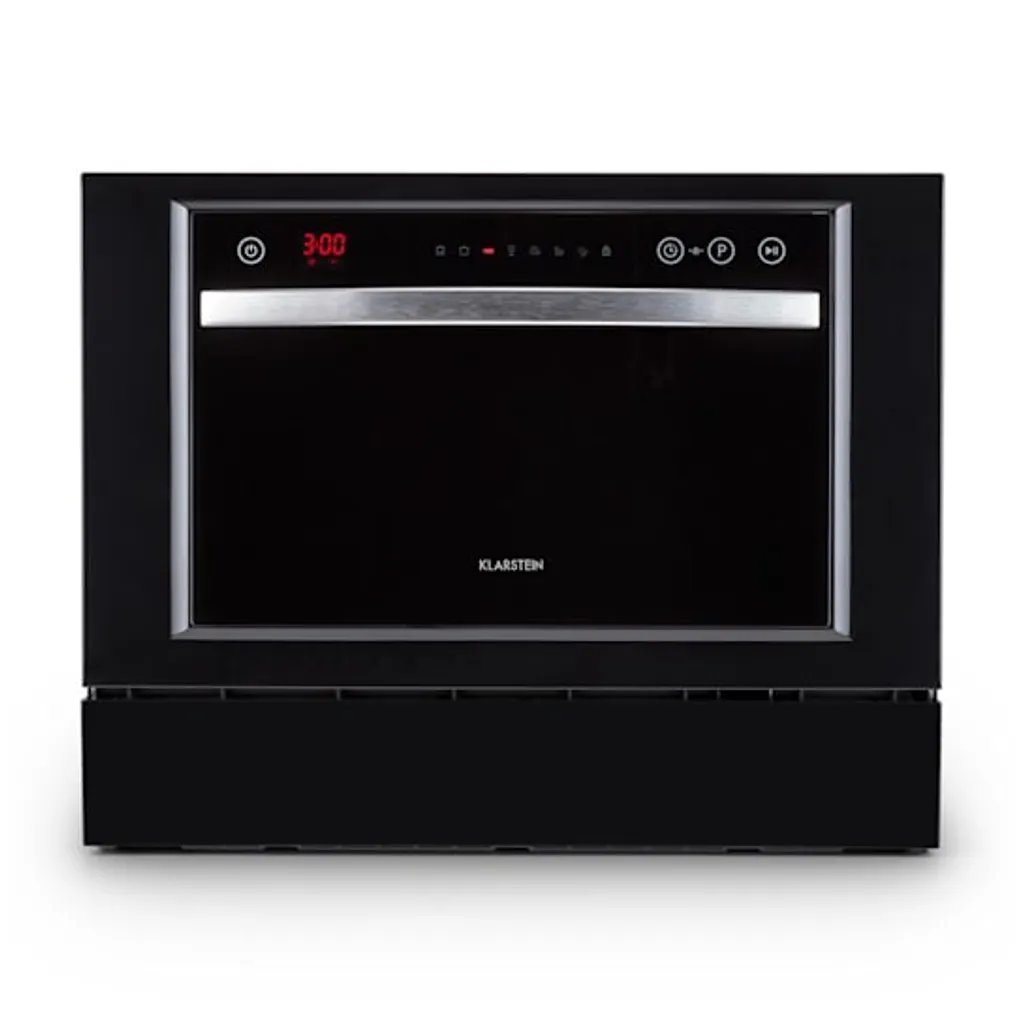 Klarstein Amazonia 6 Luminance Spülmaschine Tischgeschirrspüler (Glas-Front, Freistehend, 174 KWh/Jahr, 55 Cm Breit, 49 DB Leise, 6 Maßgedecke, 6 Programme, Aquastop) Schwarz