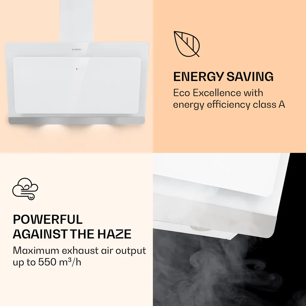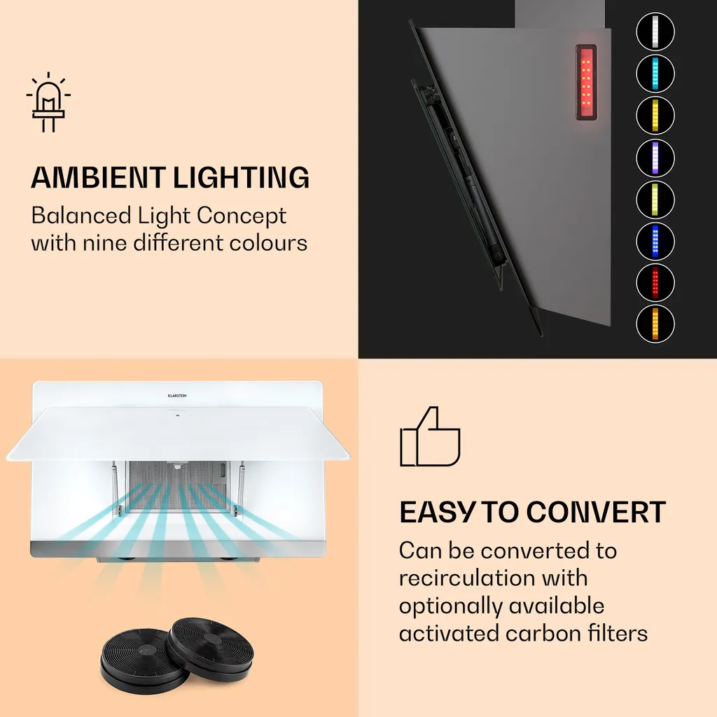 Klarstein Aurora Eco 90 Dunstabzugshaube 90 Cm , Abluftleistung: 550 M³/h , Kopffrei , Ambientelicht , EEC A+