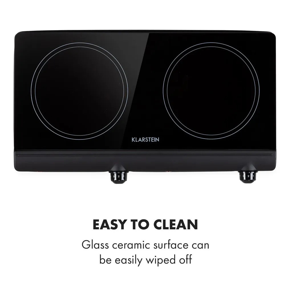 Klarstein Cookbuddy Doppelkochfeld, 2400W, Infrarot, Glaskeramik, Mobile Kochplatte, 2 X 18 Cm (Ø) Kochzone, 5 Temperaturstufen, Überhitzungsschutz, Elektrisch, Camping-Kochfeld, Edelstahl, Schwarz