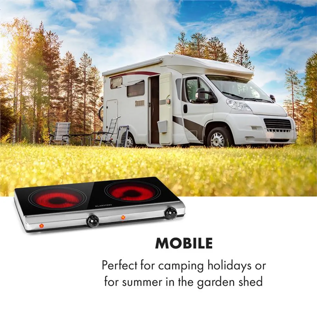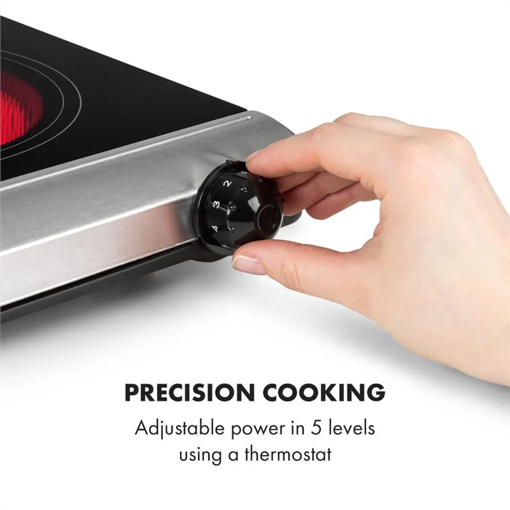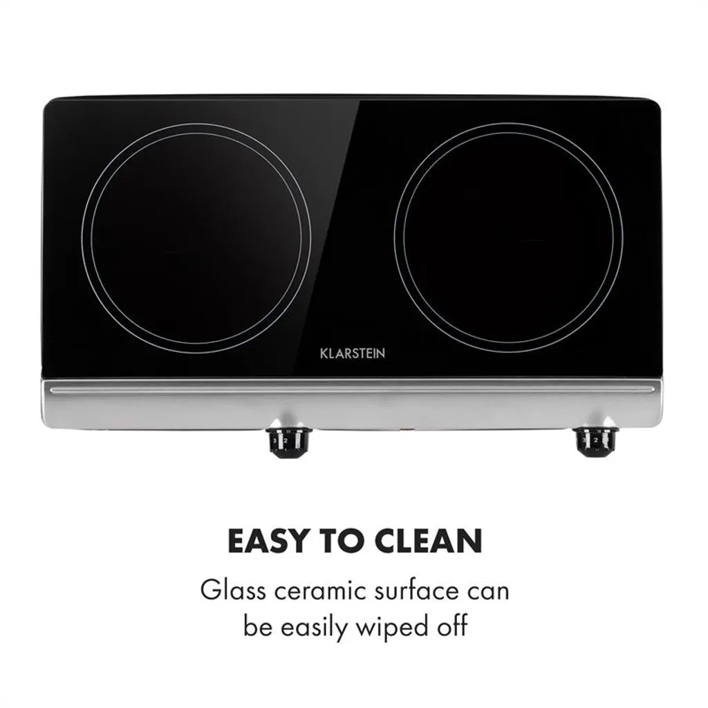 Klarstein Cookbuddy Doppelkochfeld , 2400W , Infrarot , Glaskeramik , Mobile Kochplatte , 2 X 18 Cm (Ø) Kochzone , 5 Temperaturstufen , Überhitzungsschutz , Elektrisch , Camping-Kochfeld , Edelstahl , Silber