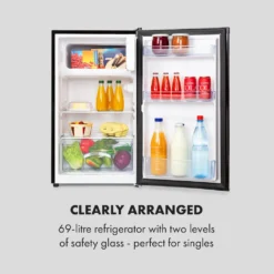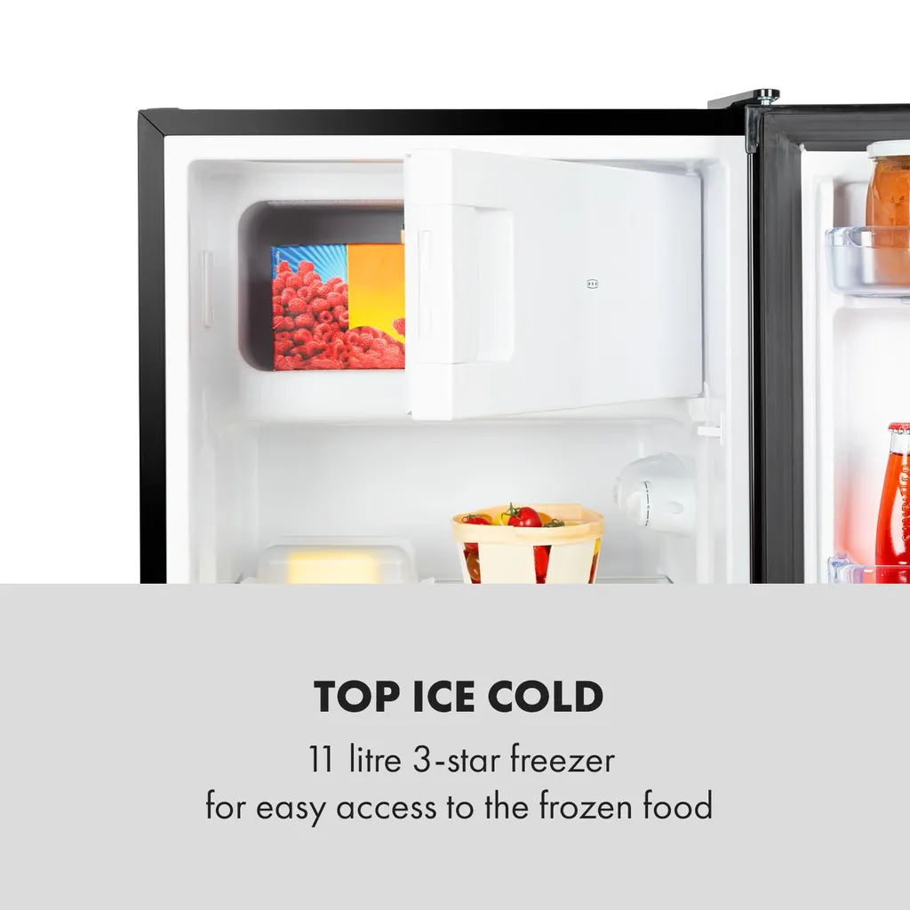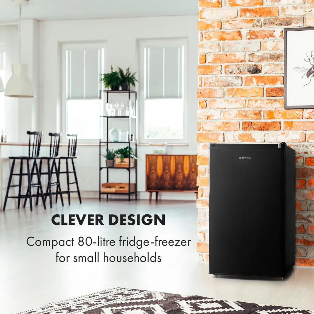Klarstein Cool Cousin Kühl-Gefrier-Kombination, Fassungsvermögen: 80 Liter, Kühlschrank: 69 Liter, 3-Sterne-Gefrierfach: 11 Liter, , 2 Glasebenen, Schwarz