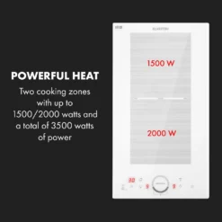 Klarstein Delicatessa Slim Domino Induktionskochfeld ,29 Cm ,Einbau ,autark ,2 Zonen: 3500 Watt ,9 Stufen ,Booster ,Flexzone ,Topferkennung ,Timer ,Glaskeramik ,rahmenlos ,weiß