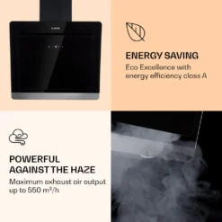 Klarstein Dunstabzugshaube 60 Cm Kopffrei – Wandhaube 550 M³/h – Umluft Oder Abluft – Energie-Effizienzklasse A+ – Kopffreihaube – Abzugshaube Kopffrei – Schwarz Wand Abluft Haube Umluft Dunstabzug Umlufthaube Dunstabzugshaube Umluft