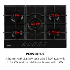 Klarstein Gasherd Einbau-Gaskochfeld – Sabaf-Brenner – Gaskochfeld Für Propan/Erdgas – Gasherd Kochfeld Einbau Gasherd – Glaskeramik – 5-Flammig – Schwarz Einbau Gas Kochfeld Gasherd 5 Platten Kochfelder Herdplatte Kochplatte Einbaukochfeld