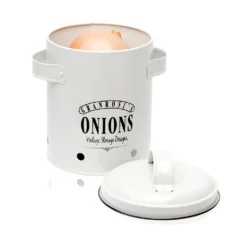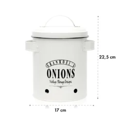 Klarstein Granrosi Iowa Zwiebeltopf Zwiebel-Vorratsdose Zwiebelbox Zwiebelbehälter , Emaille-Stahlblech , Ca. 17 X 22,5 X 14 Cm (BxHxT) , Rostfrei , Lüftungsöffnungen , Füllmenge: Ca. 1,6 Kg Zwiebeln , Seitengriffe , Creme