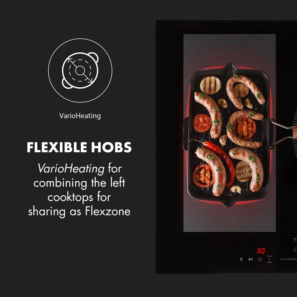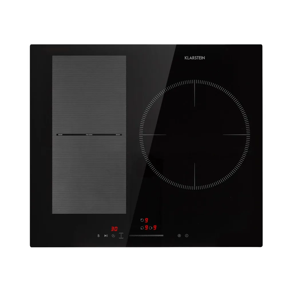 Klarstein Induktionskochfeld Einbaukochfeld Autark 60cm – 3 Zonen – FlexZone – 6600 W 9 Leistungsstufen Paella Zone Glaskeramik – Schwarz Einbau Glaskeramikkochfeld 3 Kochfelder Platten Elektro Einbaukochfeld Induktion Kochfeld Induktion