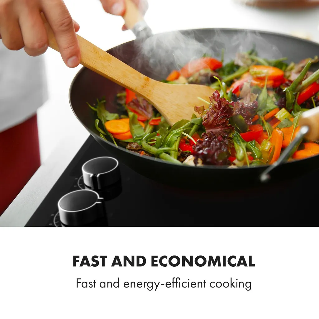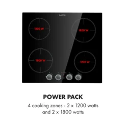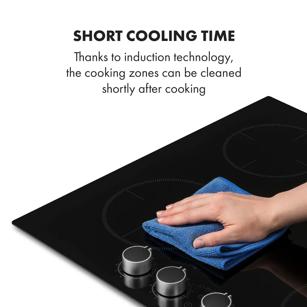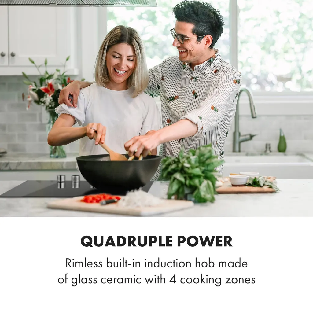 Klarstein Kochheld 4 Zonen Induktionskochfeld , Einbau-Kochfeld , 60cm , 6000 Watt , Autark , 4 Dreh-Regler , Rahmenlos , 120 Cm Kabellänge , 5-poliger-Anschluss , 9 Stufen , Abschalt-Automatik , Glas , Schwarz