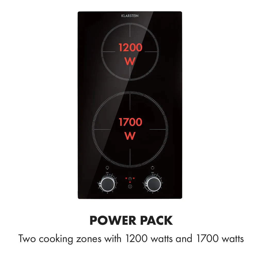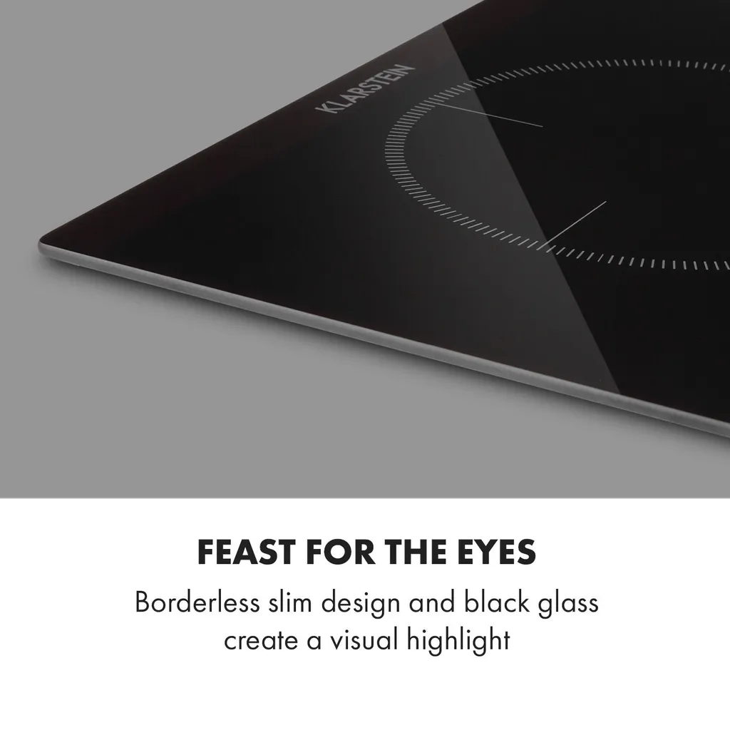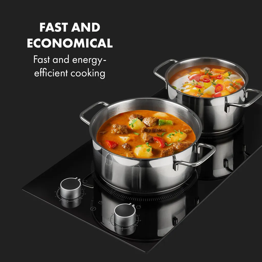 Klarstein Kochheld Doppel-Induktionskochfeld , Einbau-Kochfeld , 2900 Watt , Dreh-Regler , 120 Cm Kabellänge , 3-poliger-Anschluss , 9 Stufen , Abschalt-Automatik , Glas , Schwarz