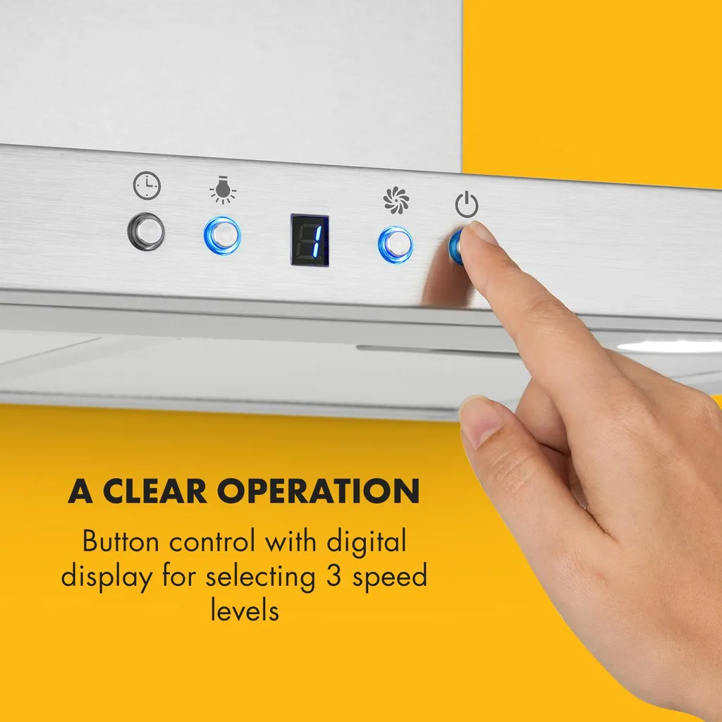Klarstein Limelight Dunstabzugshaube 60 Cm , Wandhaube , Energieeffizienzklasse A++ , Abluftbetrieb , 600 M³/h , 3 Geschwindigkeitsstufen , Digitalanzeige , LED-Kochfeldbeleuchtung , Umrüstbar Auf Umluftbetrieb , Edelstahl Gebürstet
