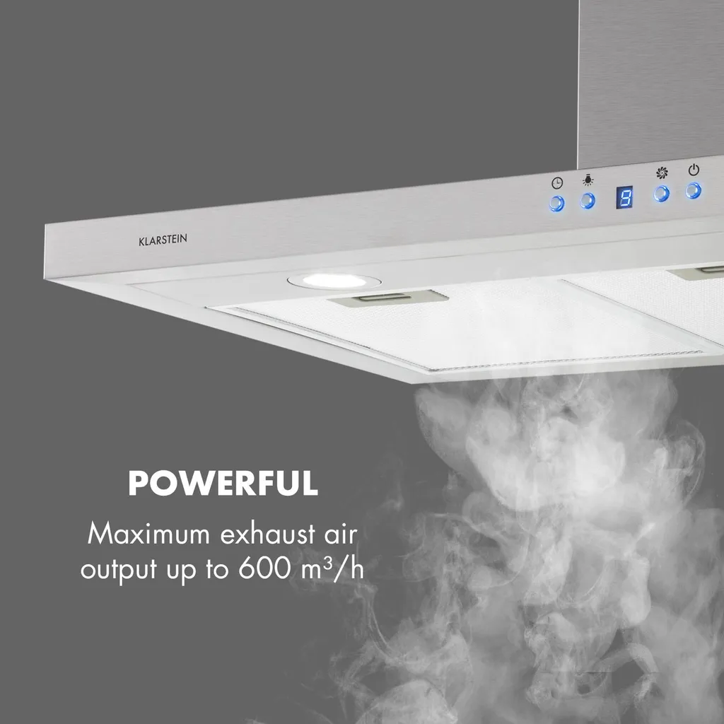 Klarstein Limelight Dunstabzugshaube 90 Cm , Wandhaube , Energieeffizienzklasse A++ , Abluftbetrieb , 600 M³/h , 3 Geschwindigkeitsstufen , Digitalanzeige , LED-Kochfeldbeleuchtung , Umrüstbar Auf Umluftbetrieb , Edelstahl Gebürstet