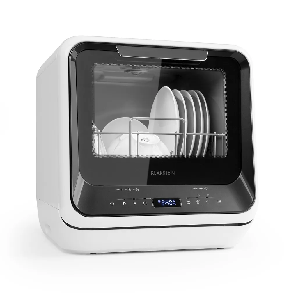 Klarstein Mini Geschirrspüler Spülmaschine Mit Platz Für 2 Maßgedecke – 6 Programme – 5 L Wasser Benötigt – LED-Display – Touch – Tischgeschirrspüler Inkl. Zubehör – Schwarz Mini Geschirrspülmaschine Klein Spülmaschine Freistehend