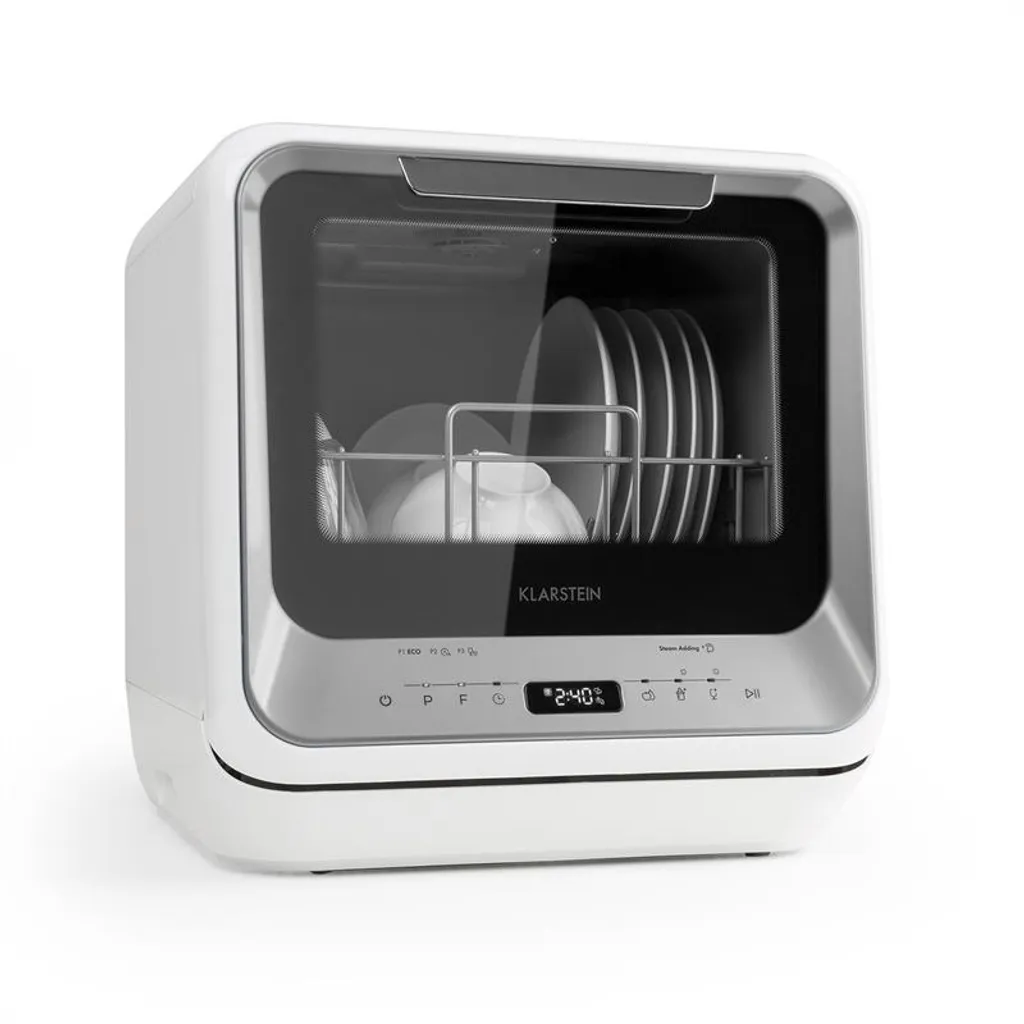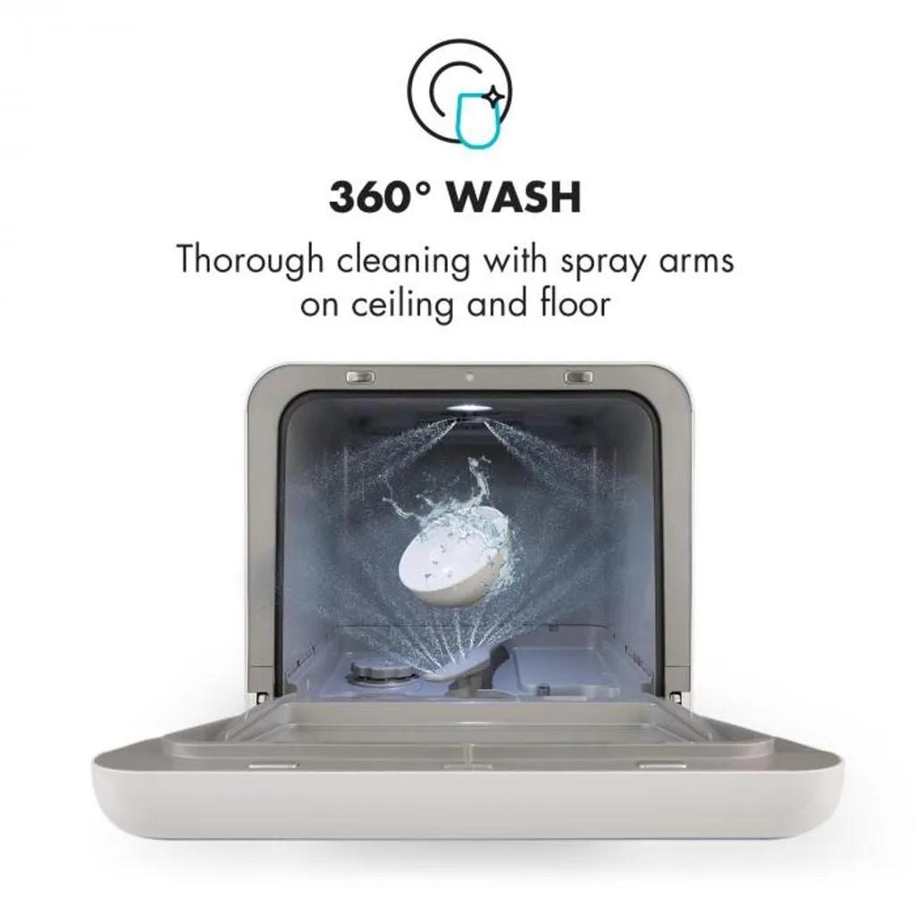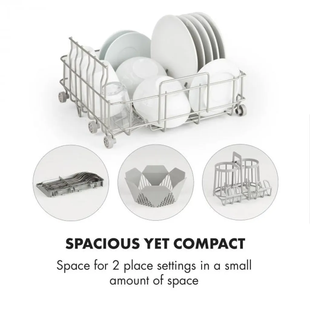 Klarstein Mini Geschirrspüler Spülmaschine Mit Platz Für 2 Maßgedecke – 6 Programme – 5 L Wasser Benötigt – LED-Display – Touch – Tischgeschirrspüler Inkl. Zubehör – Silber Mini Geschirrspülmaschine Klein Spülmaschine Freistehend
