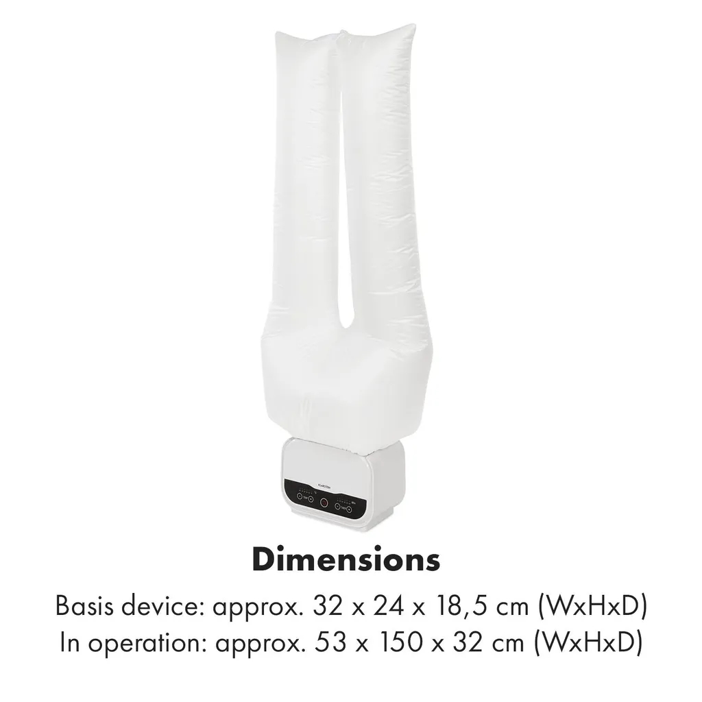 Klarstein ShirtButler Pro Automatischer Trockner Hosentrockner Hosenbügler , 2-in-1 System , 1200 Watt , Easy-Dry Technologie , Multi Size: S – XL , Thermal Safety System , 6-stufiger Timer: Bis 3 Stunden , Trocknungstemperatur: 30 – 70 °C , Bis Zu 2 Kg Maximalgewicht , LED-Kontrolllicht , Wechselbare Trocknungsaufsätze , Material: Oxford-Nylon , Weiß