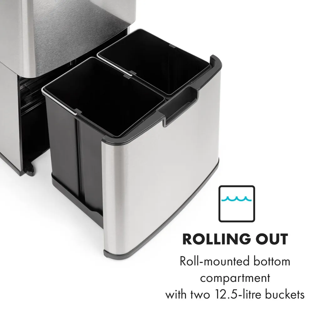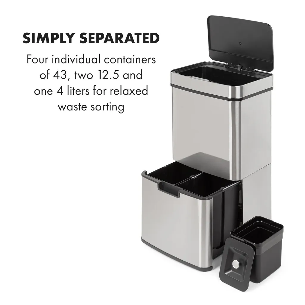 Klarstein Touchless Mülleimer Sensor-Mülleimer , 72 Liter Volumen In 4 Behältern: 43 & 2 X 12,5 Liter , Eimer Mit Deckel: 4 Liter , Touchless: Automatisches Öffnen Und Schließen , Müllbeutelhalterung , Materialien: Deckel Aus ABS-Kunststoff / Eimer Aus Fingerabdruck-resistentem Edelstahl , Silber