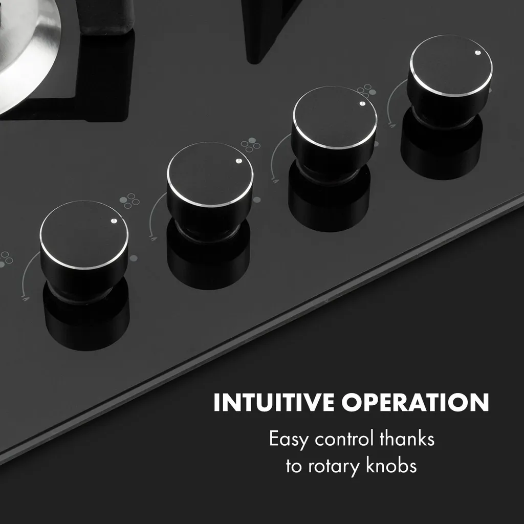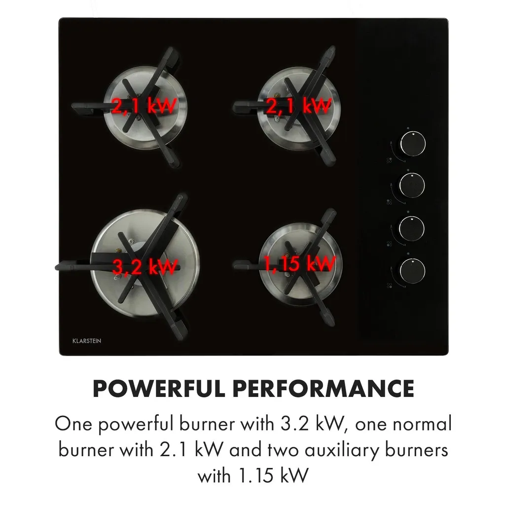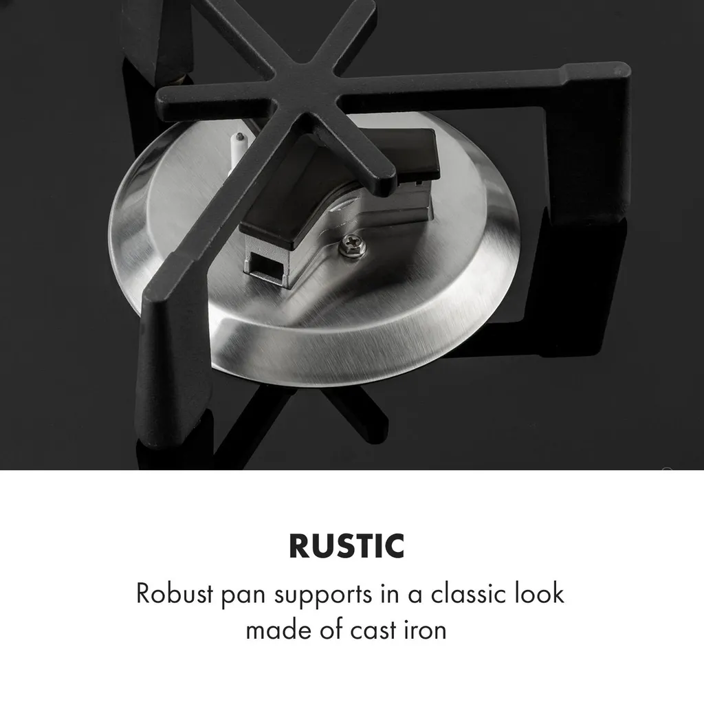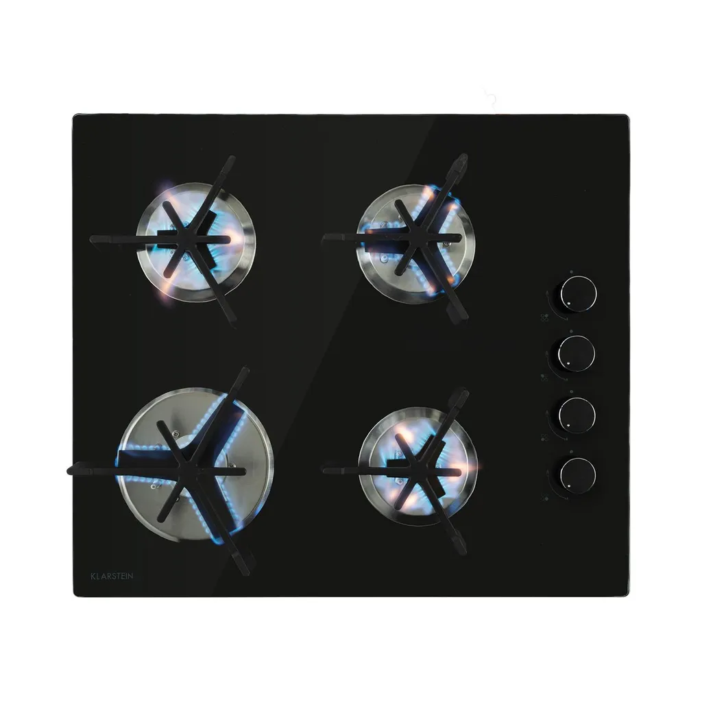 Klarstein Trifecta 4 Gaskochfeld ,4-flammig ,autark ,60 Cm ,Einbau ,Triangle-Brenner ,Erdgas/Propangas ,Sicherheitsventile ,automatische Abschaltung ,Gusseisen ,Glaskeramik Ø 6 Mm ,schwarz