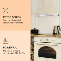 Klarstein Victoria Dunstabzugshaube 60cm , 644,5 M³/h Luftdurchsatz , 2 Stromsparende LED-Lampen , Retro-Design