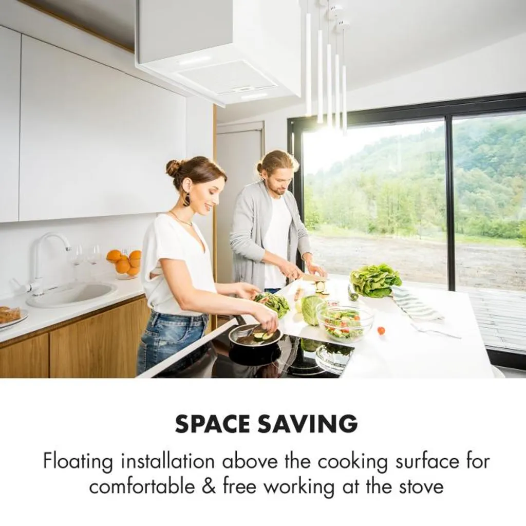 Kronleuchter L Inselabzugshaube 60cm Abluft: 590m³/h LED Touch Glas Weiß