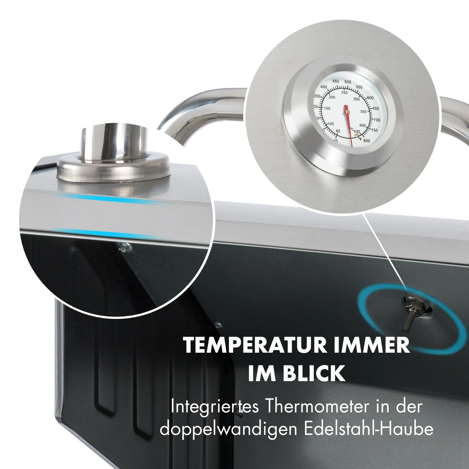 - doppelwandige Haube aus Edelstahl für indirektes Grillen