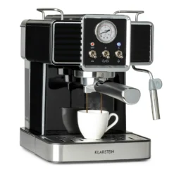 Für passionierte Genießer: Die Klarstein Passionata 20 ist eine elegante Espressomaschine mit ausgeprägtem Sinn für Funktionalität und Design. Mit kraftvollen 1.350 Watt Leistung und 20 bar entfesselt sie das volle Aroma des Kaffees. Mit der klassischen Siebträgermaschine aus Edelstahl können sowohl Kaffee- oder Espressopulver als auch Kaffee- und Espressopads verwendet werden. Im Handumdrehen kannst du mit der Dampfdüse cremigen Schaum für dein Heißgetränk zaubern. Du kannst zwei Tassen gleichzeitig brühen und diese auf der oberen Wärmeplatte warmhalten.