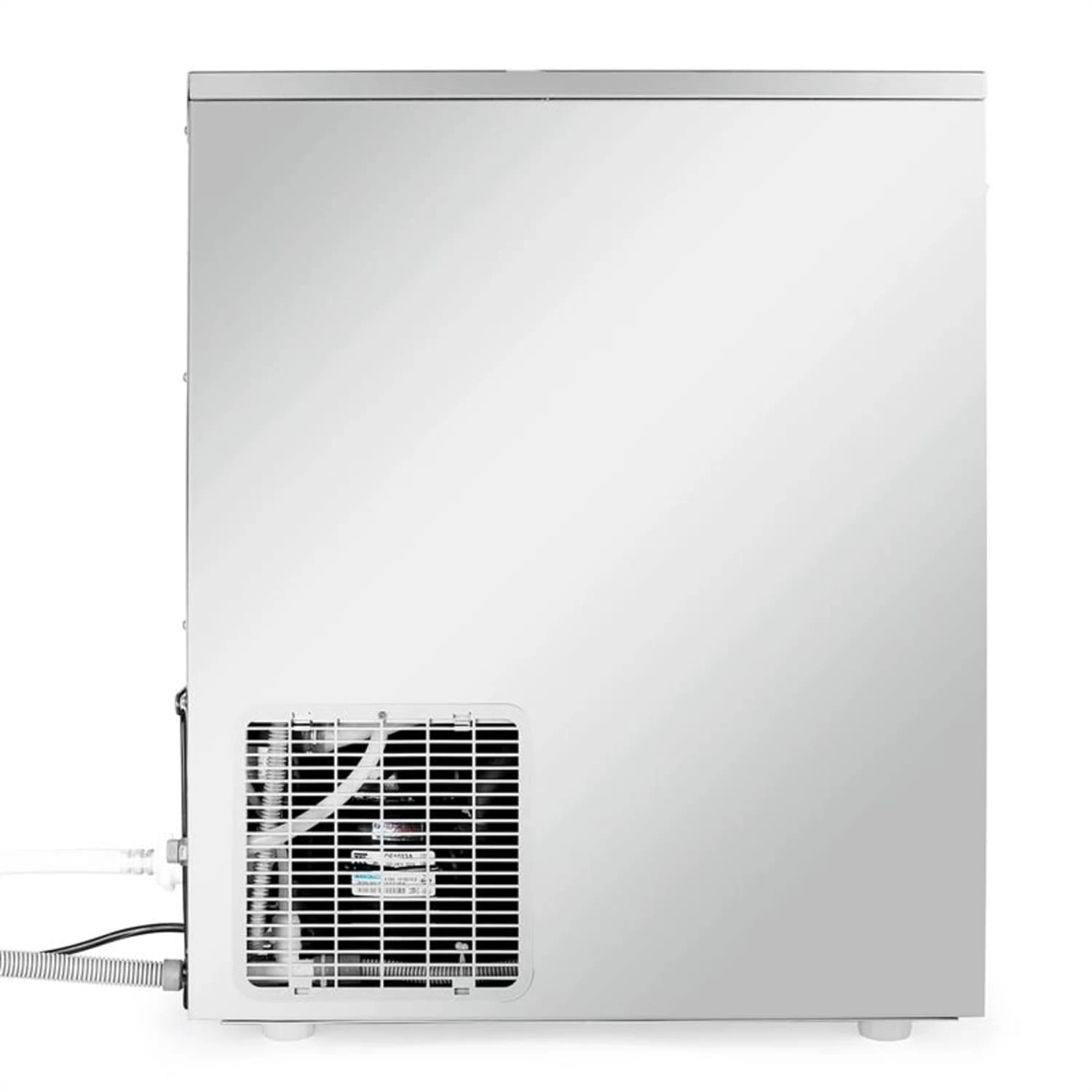 Der gewerbetaugliche Klarstein Powericer XXL Eiswürfelzubereiter bietet auch dem größten Eiswürfelbedarf mit einem Vorratslager von 6 kg sowie einem enormen Produktionsvolumen von 25 kg pro Tag die Stirn. Die frostigen Erfrischungswürfel werden bis zu ihrem Einsatz im Auffangbereich aufbewahrt und sind dann ganz einfach über eine kälteisolierende Klapptür zu erreichen.