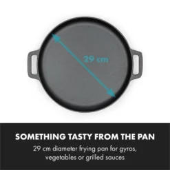 Mit der praktischen Gusseisenpfanne kannst du leckeres Gyros, Gemüse, Soßen oder einfach nur gebratene Zwiebeln für dein Rostbrätel direkt auf dem Grill zubereiten. Die 29 cm durchmessende Pfanne passt perfekt in die zentrale Aussparung des Grillrosts, kann aber auch einfach direkt auf den Rost gestellt werden. Mit den beiden Griffen wird sie ganz einfach vom Grill genommen, wenn alles fertig ist.