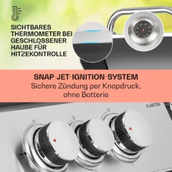 unter dem Grill. Dank SnapJetIgnition System mit batterieloser Piezozündung