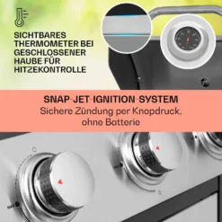 Starke Hitze ohne Rauch, mit dem Klarstein Tomahawk Gasgrill kein Problem. Drei Brenner mit je 3,6 kW Leistung sorgen für anständig Hitze unter dem Grill. Dank SnapJetIgnition System mit batterieloser Piezozündung werden die 3 Brenner bequem und augenblicklich per Knopfdruck gestartet. Mit seiner besonders großen Fläche von 60 x 43,5 cm finden herzhafte Steaks, knackige Würste, leckeres Grillgemüse und saftiger Fisch alle gleichzeitig auf dem Grillrost Platz. Die große Grillplatte sorgt für eine gleichmäßige Verteilung der Hitze, sodass auch in Randlagen der Grillzone alles schön kross gebraten wird. Mit der großen, doppelwandigen Edelstahl-Haube sind auch Spezialitäten des passiven Grillens wie Pulled Pork oder Spare Ribs kein Problem. Das in der Grillhaube integrierte Thermometer erleichtert dabei die Temperaturüberwachung. Ist der Grill zu heiß oder zu kalt, wird einfach an den stufenlosen Drehschaltern nachjustiert. Die beiden einklappbaren Seitenteile sorgen mit 31 x 45,5 cm Abstellfläche zudem für viel Platz beim Grillen – genug für Schüsseln, Pfannen, Besteck, Getränke oder Gewürze. Haben wir an alles für dein perfektes Grillerlebnis gedacht?